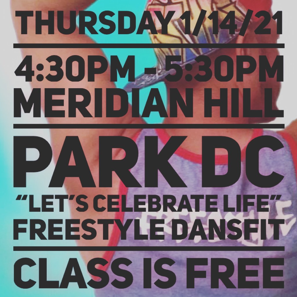 SAVE THE DATE: TOMORROW, THURSDAY, 1/14/21 #meridianhillparkdc #malcolmxparkdc #freestyledf IS LIVE “LETS CELEBRATE LIFE” CLASSES ARE TOTALLY FREE JUST JOIN US ON THE UPPER PART OF THE PARK NEXT TO THE JOAN OF ARC STATUE! #freestyledansfit #lovedance #freedance #freeclass #freeworkout