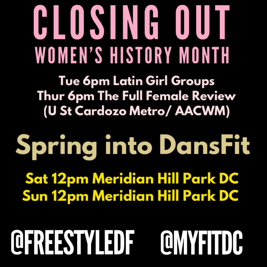 We are closing out “Women’s History Month” and “Springing into DansFit” April 1st! Schedule is ready this Spring and Summer Freestyle DansFit and FitDC have so many great events planned out for DC! Watch our website and our social media for all things Dansfit and FitDC! #freestyledansfit #freestyledf #fitdc #myfitdc #dcfitfam #womenshistorymonth #freeclass #freeoutdoorworkout #dcfitness #dcexercise #dcfree #dcdance #dchealthandfitness #dcevents #dmvevents #dmvfitness #dmvdancers #dmv #dc #washingtondc #meridianhillpark